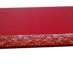 This bright red card has a beautiful golden frame with a shimmer finish window in the center. Inserts are available in same bright red color. Outer envelope is too of red color with a golden border at the bottom.