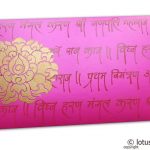 Elegant envelope made from Mexican Pink Metallic paper with Shimmer Finish. Money envelope has a rich golden floral design on left side. Ganpati mantras are printed in gloss printing.